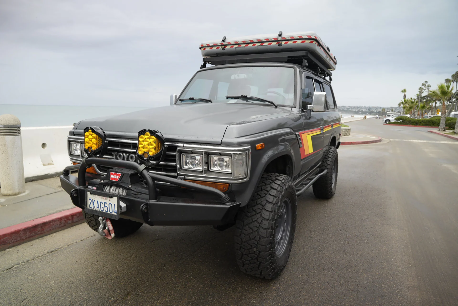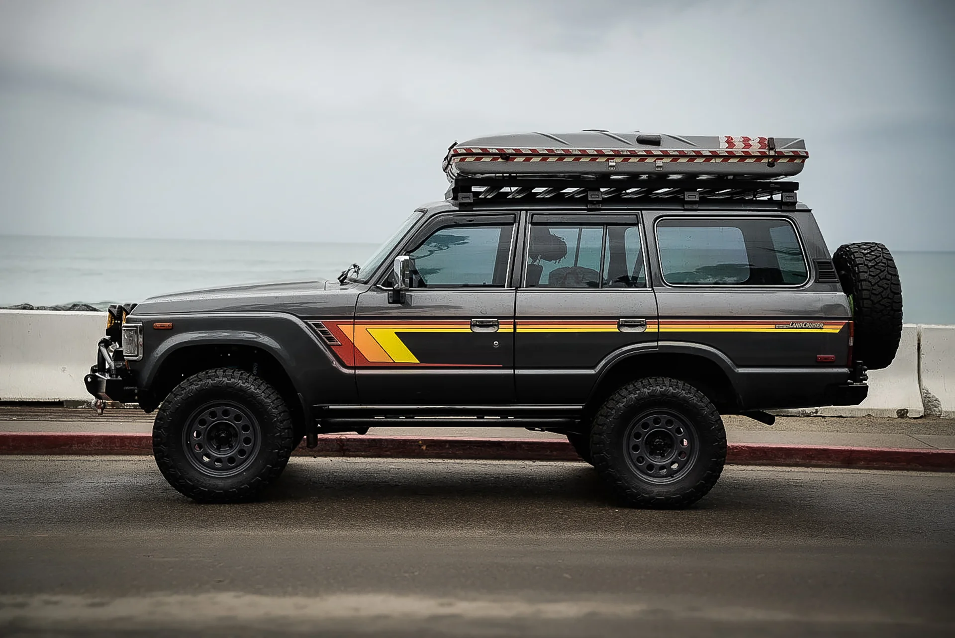This 1988 Toyota Land Cruiser FJ62 has been upgraded with an LS3 6.2 E-Rod engine, 4L65 transmission, and an 80-series axle swap for modern performance. A full Trail Tailor coil-conversion, Dobinsons suspension, and PowerBrake big-brake kit enhance control and capability. With Nomad wheels, Toyo Open Country tires, and custom Trail Tailor bumpers, this FJ62 is fully built for adventure.