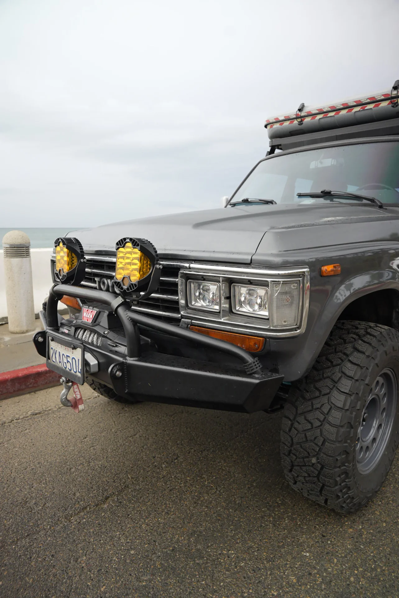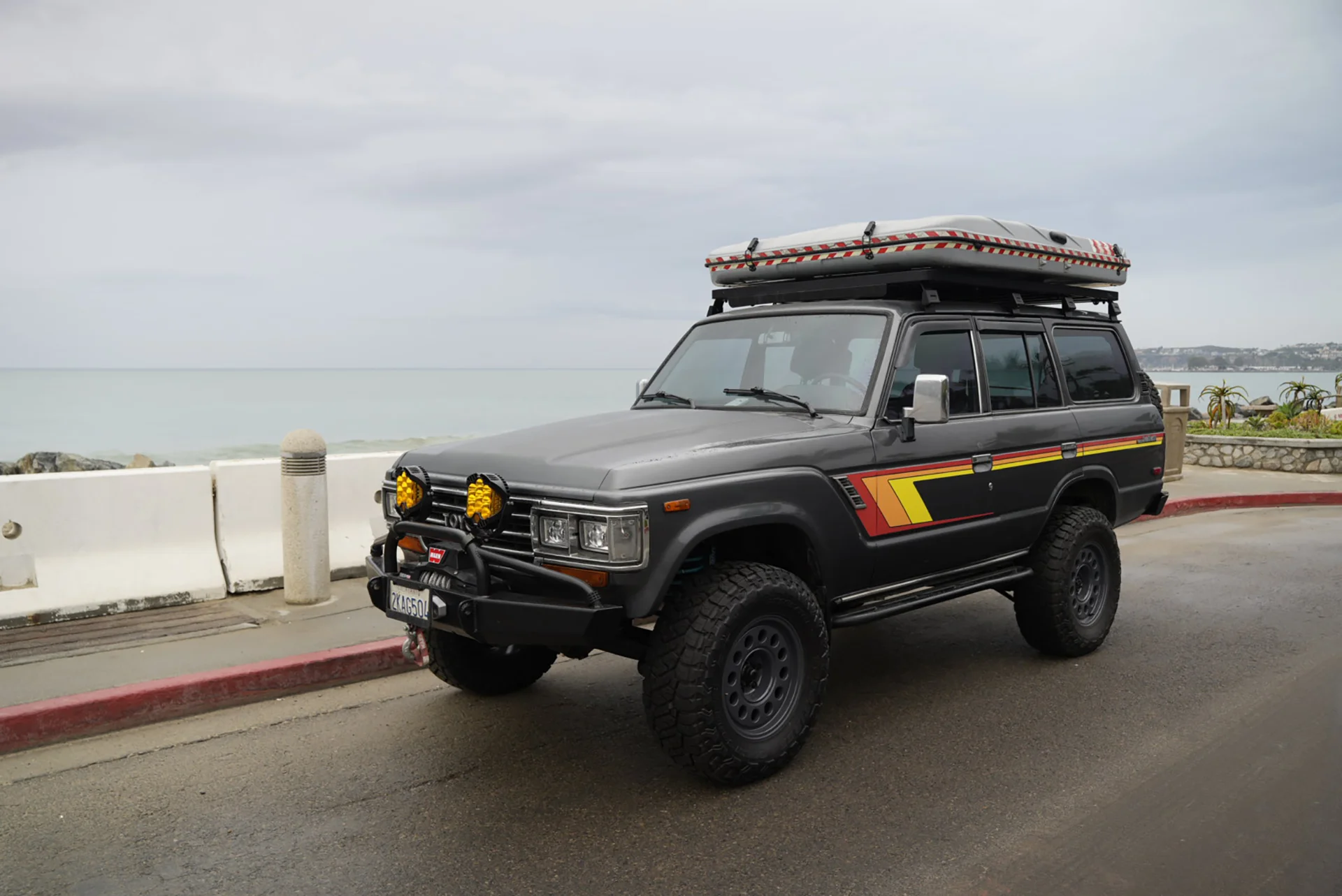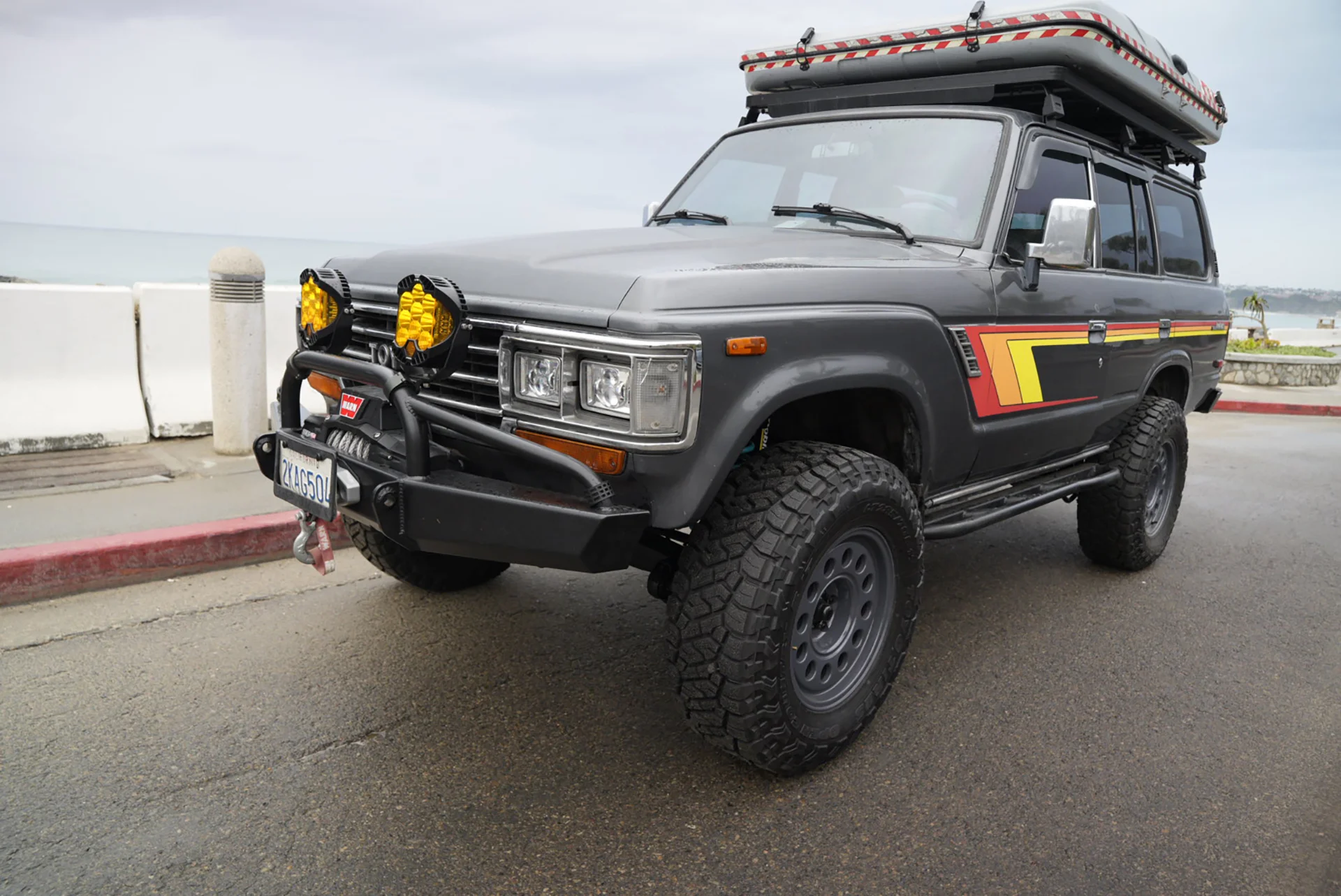 This 1988 Toyota Land Cruiser FJ62 has been upgraded with an LS3 6.2 E-Rod engine, 4L65 transmission, and an 80-series axle swap for modern performance. A full Trail Tailor coil-conversion, Dobinsons suspension, and PowerBrake big-brake kit enhance control and capability. With Nomad wheels, Toyo Open Country tires, and custom Trail Tailor bumpers, this FJ62 is fully built for adventure.
