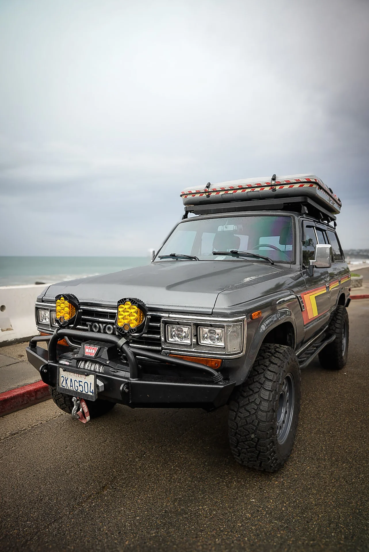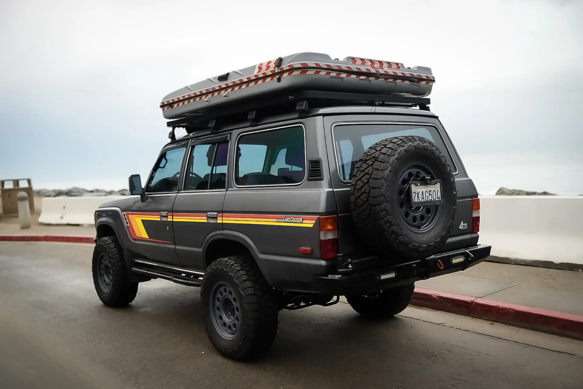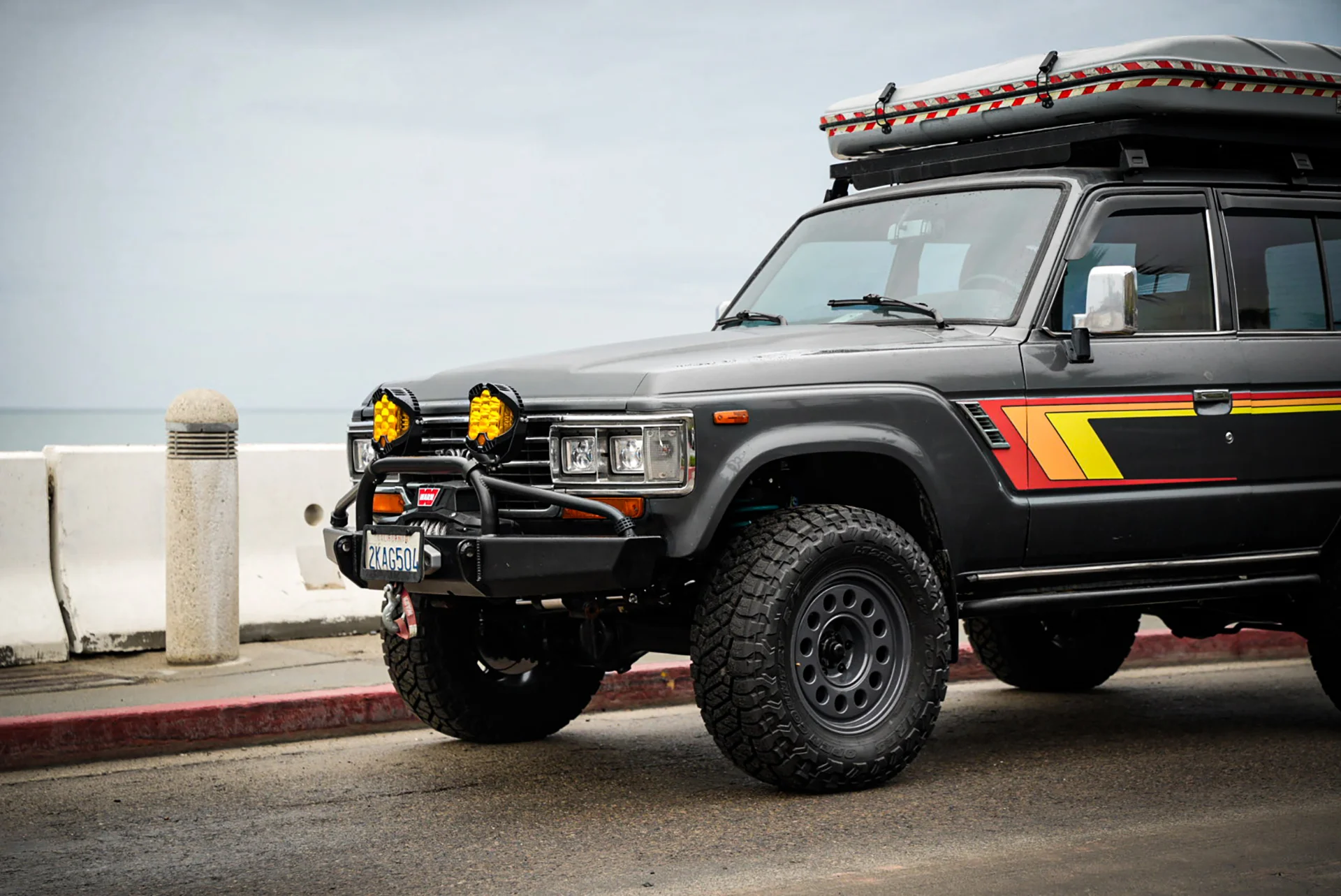 This 1988 Toyota Land Cruiser FJ62 has been upgraded with an LS3 6.2 E-Rod engine, 4L65 transmission, and an 80-series axle swap for modern performance. A full Trail Tailor coil-conversion, Dobinsons suspension, and PowerBrake big-brake kit enhance control and capability. With Nomad wheels, Toyo Open Country tires, and custom Trail Tailor bumpers, this FJ62 is fully built for adventure.